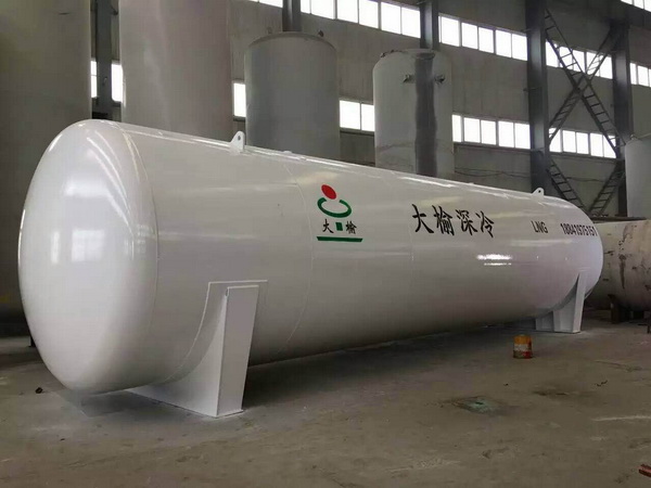 LNG由槽車運(yùn)至LNG氣化站,利用LNG卸車增壓器使槽車內(nèi)壓力增高,將槽車內(nèi)LNG送至LNG低溫儲(chǔ)罐內(nèi)儲(chǔ)存。當(dāng)從LNG儲(chǔ)罐外排時(shí),先通過儲(chǔ)罐的自增壓系統(tǒng),使儲(chǔ)罐壓力升高,然后打開儲(chǔ)罐液相出口閥,通過壓力差將儲(chǔ)罐內(nèi)的LNG送至氣化器后,經(jīng)調(diào)壓、計(jì)量、加臭等工序送入市政燃?xì)夤芫W(wǎng)。當(dāng)室外環(huán)境溫度較低,空溫式氣化器出口的天然氣溫度低于5℃時(shí),需在空溫式氣化器出口串聯(lián)水浴式加熱器,對(duì)氣化后的天然氣進(jìn)行加熱。